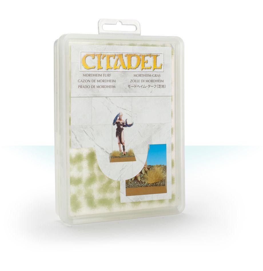 Mordheim Turf is a pallid yellow colour, and when your Warhammer armies march across it, a few choice tufts on their bases will really help to set the scene. Each sheet is 210 x 148 mm in size (or 8.3 x 5.8 inches if you prefer Imperial measurements), and holds 200 individual grass tufts of varying sizes, ranging from large patches of foliage to small clumps. They've also been specifically designed to stand up straight, adding a little extra height to the bases of your models. Once you've finished painting your miniatures, simply peel off the tufts you want to use and stick them to your bases using a dab of Citadel PVA Glue.